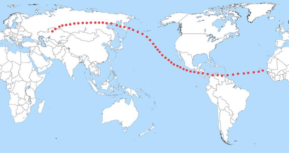 Keywords: 2036 Apophis Path of Risk.jpg BadJPEG Approximate path of risk for 99942 Apophis in 2036 self-made from data estimated by the Paul Salazar Foundation this is why it is just an approximation 2008-02-26 Mario Roberto Duran Ortiz Mariordo Fair use of public domain info by the B612 Foundation work on Apophis Please cite data source 99942 Apophis
