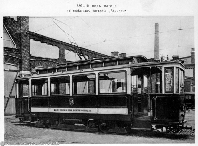 Keywords: санкт-петербург санктпетербург sankt-petersburg sanktpetersburg трамвай tram tramway мп-8 мп8 blackandwhite monochrome outdoor vehicle railroad black and white Моторный вагон первой очереди Санкт-Петербургского трамвая. Строился на Мытищинском вагоностроительном и Коломенском машиностроительном заводах в 1908 г. Всего было построено 138 штук. В обозначениях Д. И. Кондратьева имеет тип МП-8. Общий вид вагона на тележках системы «Беккер Снимок сделан между 1908−1909 годами, направление съемки − северо-запад (обсуждение на сайте PastVu). Источник фото: pastvu.com/p/125240 Моторный вагон первой очереди Санкт-Петербургского трамвая. Строился на Мытищинском вагоностроительном и Коломенском машиностроительном заводах в 1908 г. Всего было построено 138 штук. В обозначениях Д. И. Кондратьева имеет тип МП-8. Общий вид вагона на тележках системы «Беккер Снимок сделан между 1908−1909 годами, направление съемки − северо-запад (обсуждение на сайте PastVu). Источник фото: pastvu.com/p/125240