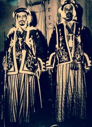 | Keywords: 208-PU-173-F-31: President Roosevelt Meets Middle East Sovereigns. Personal bodyguards of King Ibn Saud of Saudi Arabia stand stiffly at attention on board USS Quincy (CA 71) while King Ibn Saud and President Franklin D. Roosevelt confer after the Crimea Conference at Yalta. The Saudi Arabian guards wear gaily printed Galabeyas and “Crusader” jackets. Their equipment comprises of long Arab swords, rifles, automatic submachine guns and field glasses. The meeting between King Ibn Saud and President Roosevelt took place on Great Bitter Lake through which runs the Suez Canal, February 1945.U.S. Army Signal Corps Photograph. Office of War Information Collection. (2016/08/30). 208-PU-173-F-31: President Roosevelt Meets Middle East Sovereigns. Personal bodyguards of King Ibn Saud of Saudi Arabia stand stiffly at attention on board USS Quincy (CA 71) while King Ibn Saud and President Franklin D. Roosevelt confer after the Crimea Conference at Yalta. The Saudi Arabian guards wear gaily printed Galabeyas and “Crusader” jackets. Their equipment comprises of long Arab swords, rifles, automatic submachine guns and field glasses. The meeting between King Ibn Saud and President Roosevelt took place on Great Bitter Lake through which runs the Suez Canal, February 1945.U.S. Army Signal Corps Photograph. Office of War Information Collection. (2016/08/30). |