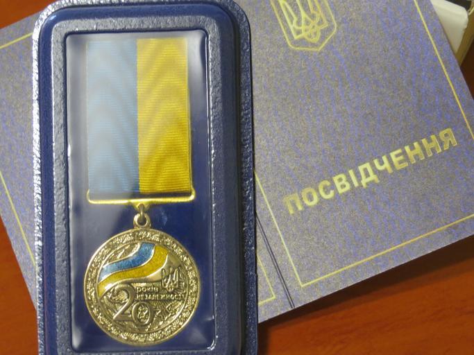 Keywords: Медаль 20 років незалежності України.JPG uk едаль 20 оків незалежності Ук аїни 2015-04-15 10 55 08 own Ата other versions cc-zero Uploaded with UploadWizard Civil decorations of Ukraine