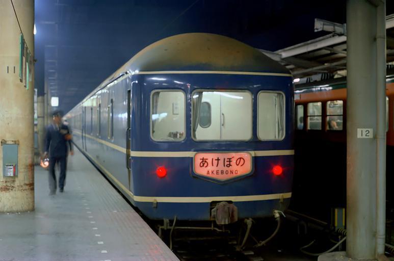 MAKE A MEME View Large Image 20 akebono 1976.JPG A Japanese National Railways 20 series generator van at the rear of an Akebono limited express sleeping car service at Ueno Station in Tokyo ja 20系あけぼの 上野駅にて  1976 own Shellparakeet cc-zero ...