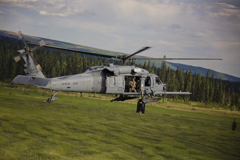 Keywords: 210th search and rescue 130710-D-FZ583-712.jpg en An Alaska Air National Guard HH-60 Pave Hawk from the 210th Rescue Squadron performs a simulated search and rescue pattern in Alaska The 210th Rescue Squadron is part of a network of search-and-rescue organizations that save hundreds of lives in and around Alaska every year This network includes not only the 210th's sister squadrons in the 176th Wing but also such agencies as the U S Coast Guard the Alaska State Troopers the National Park Service the Civil Air Patrol and others Other 210th missions include non-combat search and rescue 2013-07-10 George Kale https //www dvidshub net/image/1550770 130710-D-FZ583-712 2014-09-15 13 54 JOINT BASE ELMENDORF-RICHARDSON AK US PD-USGov Joint Base Elmendorf-Richardson Images from DoD uploaded by Fæ