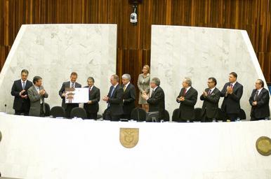 | Keywords: sessão solene sessãosolene ayres britto ayresbritto Em solenidade realizada nesta segunda-feira (21), às 18h30, a Assembleia Legislativa entregou o título de Cidadão Honorário do Paraná ao ministro Carlos Augusto Ayres de Freitas Britto, vice-presidente do Supremo Tribunal Federal (STF). O evento aconteceu no Plenário, por iniciativa do deputado Fábio Camargo (PTB). Ao justificar a homenagem, seu autor lembrou que Ayres Britto presidiu o Tribunal Superior Eleitoral (TSE) no período 2008/2010 e atuou para democratizar as eleições municipais ao viabilizar a contratação de servidores concursados para administrar o pleito, em lugar dos indicados dos prefeitos. Leia mais: www.alep.pr.gov.br/imprensa/noticias/noticia/20684/assemb... Foto: Sandro Nascimento/Alep (crédito obrigatório) Em solenidade realizada nesta segunda-feira (21), às 18h30, a Assembleia Legislativa entregou o título de Cidadão Honorário do Paraná ao ministro Carlos Augusto Ayres de Freitas Britto, vice-presidente do Supremo Tribunal Federal (STF). O evento aconteceu no Plenário, por iniciativa do deputado Fábio Camargo (PTB). Ao justificar a homenagem, seu autor lembrou que Ayres Britto presidiu o Tribunal Superior Eleitoral (TSE) no período 2008/2010 e atuou para democratizar as eleições municipais ao viabilizar a contratação de servidores concursados para administrar o pleito, em lugar dos indicados dos prefeitos. Leia mais: www.alep.pr.gov.br/imprensa/noticias/noticia/20684/assemb... Foto: Sandro Nascimento/Alep (crédito obrigatório) |