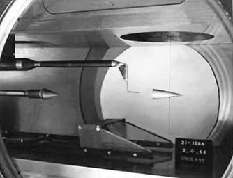 Keywords: blackandwhite monochrome black and white (373-6348A): One method for attempting free-flight test conditions in the HWT is shown here: wire suspension. (373-6348A): One method for attempting free-flight test conditions in the HWT is shown here: wire suspension. |