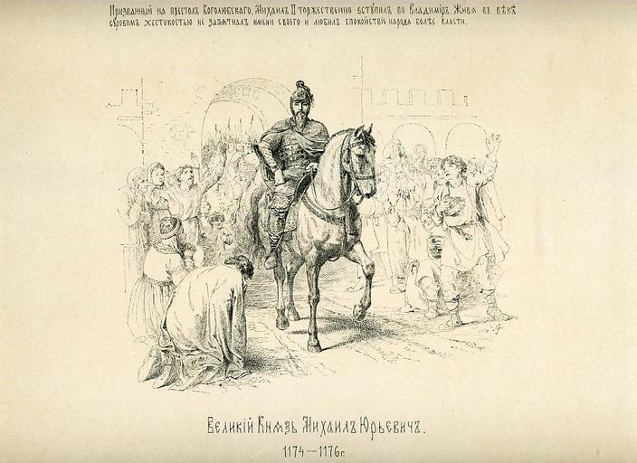 Keywords: 24 History of the Russian state in the image of its sovereign rulers.jpg ru Великий Князь ихаил Ю ьевич 1174-1176 г <br>П изванный на п естол Боголюбского ихаил II то жественно вступил во Владими Живя в веке су овом жестокостью не запятнал имени своего и любил спокойствие на ода более власти full 24 History of the Russian state in the image of its sovereign rulers - fragment jpg Michael I of Vladimir |