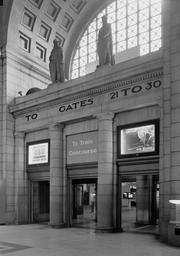 | Keywords: 24. INTERIOR, DETAIL, ENTRANCE TO TRAIN CONCOURSE FROM WAITING ROOM - Union Station030033pv.jpg en Union Station 50 Massachusetts Avenue Northeast Washington District of Columbia DC 5 x 7 in accession number Reproduction Number HABS DC WASH 536--24 Call Number HABS DC WASH 536--24 institution Library of Congress Prints and Photographs Division Washington D C 20540 USA http //hdl loc gov/loc pnp/pp print LOC-image hhh dc0254/photos 030033p creator Jack Boucher Rights Advisory No known restrictions on images made by the U S Government; images copied from other sources may be restricted http //www loc gov/rr/print/res/114_habs html 38 895 -77 03667 DC WASH 536--24 Union Station Washington D C Uploaded with UploadWizard |