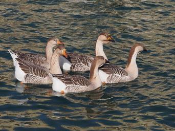 MAKE A MEME View Large Image Χήνες 2775.JPG en Geese Anser cygnoides in the old harbour of Rethymno Their beak is not as pronounced as the original species and could be a hybrid with Anser anser or Anser fabalis as the hydridation between these species is common ...