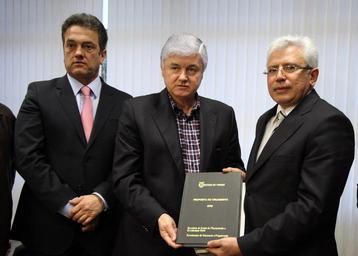 | Keywords: plauto miró plautomiró valdir rossoni valdirrossoni orçamento ppa groupshot people indoor A proposta do Orçamento do Estado para o exercício de 2012 e o Plano Plurianual (PPA) para 2012/2015 foram entregues pelo chefe da Casa Civil, Durval Amaral, nesta quinta-feira (29), ao presidente da Assembleia Legislativa, deputado Valdir Rossoni. A entrega aconteceu no Gabinete da Presidência do Legislativo. O ato foi acompanhado pelo 1º secretário, deputado Plauto Miró, pelo líder do Governo, deputado Ademar Traiano, e pelo deputado Paranhos. Foto: Nani Gois/Alep (crédito obrigatório) A proposta do Orçamento do Estado para o exercício de 2012 e o Plano Plurianual (PPA) para 2012/2015 foram entregues pelo chefe da Casa Civil, Durval Amaral, nesta quinta-feira (29), ao presidente da Assembleia Legislativa, deputado Valdir Rossoni. A entrega aconteceu no Gabinete da Presidência do Legislativo. O ato foi acompanhado pelo 1º secretário, deputado Plauto Miró, pelo líder do Governo, deputado Ademar Traiano, e pelo deputado Paranhos. Foto: Nani Gois/Alep (crédito obrigatório) |