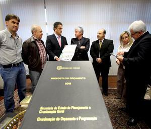 | Keywords: paranhos ademar traiano ademartraiano plauto miró plautomiró valdir rossoni valdirrossoni orçamento ppa people A proposta do Orçamento do Estado para o exercício de 2012 e o Plano Plurianual (PPA) para 2012/2015 foram entregues pelo chefe da Casa Civil, Durval Amaral, nesta quinta-feira (29), ao presidente da Assembleia Legislativa, deputado Valdir Rossoni. A entrega aconteceu no Gabinete da Presidência do Legislativo. O ato foi acompanhado pelo 1º secretário, deputado Plauto Miró, pelo líder do Governo, deputado Ademar Traiano, e pelo deputado Paranhos. Foto: Nani Gois/Alep (crédito obrigatório) A proposta do Orçamento do Estado para o exercício de 2012 e o Plano Plurianual (PPA) para 2012/2015 foram entregues pelo chefe da Casa Civil, Durval Amaral, nesta quinta-feira (29), ao presidente da Assembleia Legislativa, deputado Valdir Rossoni. A entrega aconteceu no Gabinete da Presidência do Legislativo. O ato foi acompanhado pelo 1º secretário, deputado Plauto Miró, pelo líder do Governo, deputado Ademar Traiano, e pelo deputado Paranhos. Foto: Nani Gois/Alep (crédito obrigatório) |