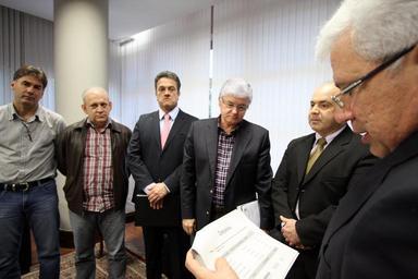 Keywords: paranhos ademar traiano ademartraiano plauto miró plautomiró valdir rossoni valdirrossoni orçamento ppa people groupshot A proposta do Orçamento do Estado para o exercício de 2012 e o Plano Plurianual (PPA) para 2012/2015 foram entregues pelo chefe da Casa Civil, Durval Amaral, nesta quinta-feira (29), ao presidente da Assembleia Legislativa, deputado Valdir Rossoni. A entrega aconteceu no Gabinete da Presidência do Legislativo. O ato foi acompanhado pelo 1º secretário, deputado Plauto Miró, pelo líder do Governo, deputado Ademar Traiano, e pelo deputado Paranhos. Foto: Nani Gois/Alep (crédito obrigatório) A proposta do Orçamento do Estado para o exercício de 2012 e o Plano Plurianual (PPA) para 2012/2015 foram entregues pelo chefe da Casa Civil, Durval Amaral, nesta quinta-feira (29), ao presidente da Assembleia Legislativa, deputado Valdir Rossoni. A entrega aconteceu no Gabinete da Presidência do Legislativo. O ato foi acompanhado pelo 1º secretário, deputado Plauto Miró, pelo líder do Governo, deputado Ademar Traiano, e pelo deputado Paranhos. Foto: Nani Gois/Alep (crédito obrigatório)