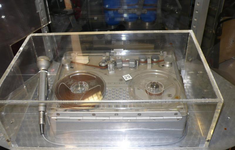 Keywords: 29 Bathyscaph Trieste German Museum Munich.JPG Bathyscaph Trieste Deutsches Museum München 1 Schalttafel für die Außenbeleuchtung 3 Scheinwerfer Quecksilberdampflampen an der Unterseite des Schwimmkörpers und 2 Glühlampen in Stahlgehäusen am Beobachtungsfenster der Tauchkugel und im Vorzimmer Ateliers de Constructions Mécaniques de Vevey S A Vevey Schweiz 2 Schalttafel zur Betätigung der Ballastschleusen und anderen Einrichtungen Ateliers de Constructions Mécaniques de Vevey S A Vevey Schweiz 3 Schalttafel für die Antriebsmotoren Ateliers de Constructions Mécaniques de Vevey S A Vevey Schweiz 4 Reservematerial 5 Chronometer des Fabrikats wie es auch bei den Ballonflügen in die Stratosphäre 1931 und 1932 von Auguste Piccard benutzt wurde Ateliers de Constructions Mécaniques de Vevey S A Vevey Schweiz 6 Totalisator zur Kontrolle der Ballastabgabe Mit zwei Sekunden-Zählwerken die nur laufen wenn der Strom der zugehörigen Ballastschleuse unterbrochen ist und Ballast abgegeben wird Da der Ballastausfluß jeder Schleuse ziemlich genau 10 kg je Sekunde beträgt kann man sofort erkennen wie viel Ballast verbraucht worden ist Langines Compagnie des Mantres Longines Francillon S A St Imier Schweiz 7 Manometer die zur Ermittlung der Tauchtiefe den Wasserdruck messen Haenni Jegenstorf Schweiz 8 Hochdruckventil 1200 kp/qcm Maschinenfabrik Burckhardt Aktiengesellschaft Basel Schweiz 9 Wasserdichter und explosionsgeschützter Fernsprechapparat für Batteriebetrieb mit einer Buchse im Schwimmkörper so dass nach dem Auftauchen eine Kabelverbindung mit Begleitfahrzeugen hergestellt und so beim Tauchen bis in geringe Tiefen aufrechterhalten werden kann Società Italiana Telecomunicazioni Siemens s p a Milano Italien 10 Automatische Filmkamera Bolex H 16 Reflex Paillard S A Ste Croix Schweiz 11 Photographische Kamera Exakta Ihagee Kamerawerk A G Dresden 12 Anzeigeinstrument des Nickelwiederstandsthermometers zur Messung der Temperatur des Tragebenzins Bosco Co S p a Torino Italien 13 Pendel zur Bestimmung der Trimmlage 14 Zink-Silber-Akkumulatoren zum Betrieb elektrischer Geräte der Ballastschleusen der Haltemagnete der Antriebsmotoren der Ventilatoren der Scheinwerfer Lampen und Innenbeleuchtung 330 Zellen zu je 1 5 Volt Electrona S A Boudry Schweiz 15 Pressluftflaschen zum Ausblasen des Wassers aus Vorzimmer und Einsteigeschacht AGA A G Pratteln-Zürich-Genf 16 Sauerstoff-Flaschen der Belüftungsanlage um den Sauerstoffgehalt der Atemluft in der Tauchkugel zu erneuern AGA A G Pratteln-Zürich-Genf 17 Natronpatronen Aus den Druckflaschen in einem Injektor strömender Sauerstoff saugt Raumluft durch diese drei Patronen Kohlendioxyd wird absorbiert und die gereinigte Luft gelangt gemischt mit Sauerstoff im Kreislauf in die Kabine zurück Drägerwerk Lübeck 18 Schalttafel Ateliers de Constructions Mécaniques de Vevey S A Vevey Schweiz 19 Unterwassertelefon nach Russel Lewis Laboratorium für Unterwasserschall New London Connecticut USA mit dem auch während des Tauchens eine Sprech- oder Signalverbindung mit dem Begleitschiff aufrechterhalten werden kann Die beim Sprechen auf das Mikrofon auftreffenden Schallwellen werden im Bereich von 300 bis 3000 Hertz in elektrische Schwingungen und nach Verstärkung zur à bertragung im Wasser in Unterschallschwingungen von 8387 bis 11087 Hertz umgewandelt Einseitenband-Modulation mit unterdrücktem Träger Beim Empfang findet der umgekehrte Vorgang statt 20 Echolot 21 Log zum messen der Vertikalgeschwindigkeit 22 Innenbeleuchtung mit 6 kleinen Glühlampen zur Beobachtung der Instrumente Sie beleuchten die weiß gestrichene Decke der Tauchkugel und sind gegen die Besatzung abgeschirmt um Blendwirkung zu vermeiden 23 Traggerüste für die Geräteausstattung Verformungen der Kugel durch Temperaturänderungen werden von Schraubfedern aufgenommen die in Bohrungen am oberen Ende der Stangen sitzen und einen Messingkolben gegen die Kugelwand drücken Ateliers de Constructions Mécaniques de Vevey S A Vevey Schweiz 24 Sitze 25 Fußboden der den Keller abdeckt Im Keller werden Alkalipatronen zur Erneuerung der Atemluft Druckgasflaschen zum Ausblasen des Einsteigschachtes nach einer Tauchfahrt und anderes Reservematerial aufbewahrt 26 Tauchkugel Fried Krupp Essen 27 Einsteigeluke 28 Hauptbeobachtungsfenster 29 Tonbandgerät Kudelski NAGRA Type I Kudelski Enregistreur autonomes Nagra Paudex-Lausanne own Reinraum 2010-09-19 Trieste submarine 1953 Nagra