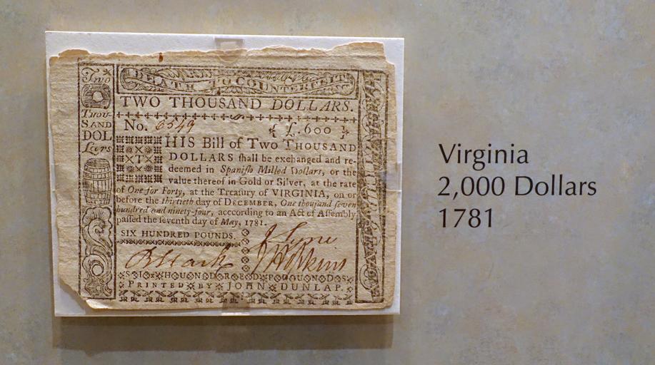 | View Original: | 2,000 Dollars, Virginia, 1781 - National Museum of American History - DSC00190.jpg (3273x1827) | |||