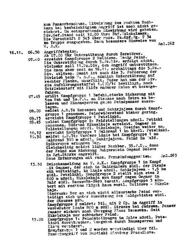 | Keywords: ЖБД 2 тд вермахта от 16.11.41 г. (начало дня).jpg ru Ст аница жу нала боевых действий ЖБД 2-й танковой дивизии ве махта начало дня от 16 11 41 г 1941-11-16 NARA T315 R90 2 PzDiv Штаб 2-й танковой дивизии ве махта other versions PD-USGov Fall Barbarossa Documents of the Germany 1941 |