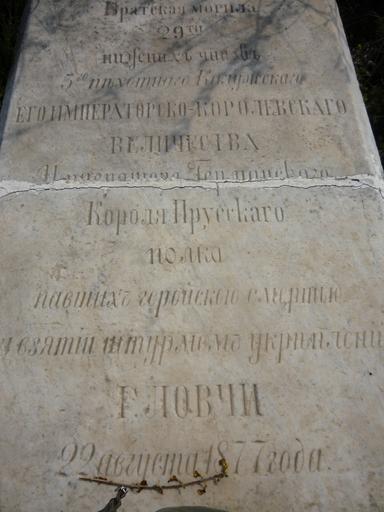 | Keywords: Надгробна плоча 2.JPG  bg Паметник на 29  уски войници от 5-и пехотен Калужки полк загинали на 22 август 1877 г п и освобождението на Ловеч от османско иго own Bulldog4eto 08 04 2010 War memorials in Bulgaria Monuments and memorials in Lovech Mass graves in Bulgaria  |