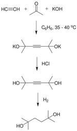 | Keywords: 2,5-Dimethyl-2,5-hexanediol synthesis.svg en 2 5-Dimethyl-2 5-hexanediol_synthesis own Choij 2009-12-13 ImageNote 1 1 11 54 28 204 348 2 acetylene 乙炔 ImageNoteEnd 1 ImageNote 2 77 1 38 48 204 348 2 acetone 丙酮 ImageNoteEnd 2 ImageNote 3 135 13 33 22 204 348 2 Potassium hydroxide 氢氧化钾 ImageNoteEnd 3 ImageNote 4 30 101 134 45 204 348 2 2 5-Dimethyl-3-hexyne-2 5-diol dipotassium salt 2 5-二甲基-3-己炔-2 5-二醇二钾 ImageNoteEnd 4 ImageNote 5 31 199 134 41 204 348 2 2 5-Dimethyl-3-hexyne-2 5-diol 2 5-二甲基-3-己炔-2 5-二醇 ImageNoteEnd 5 ImageNote 6 108 160 26 18 204 348 2 Hydrogen chloride 氯化氢 ImageNoteEnd 6 ImageNote 7 111 255 20 21 204 348 2 Hydrogen gas 氢气 ImageNoteEnd 7 ImageNote 8 39 291 124 56 204 348 2 2 5-Dimethyl-2 5-hexanediol 2 5-二甲基-2 5-己二醇 ImageNoteEnd 8 ImageNote 9 106 61 34 23 204 348 2 Benzene 苯 ImageNoteEnd 9 Polyols |