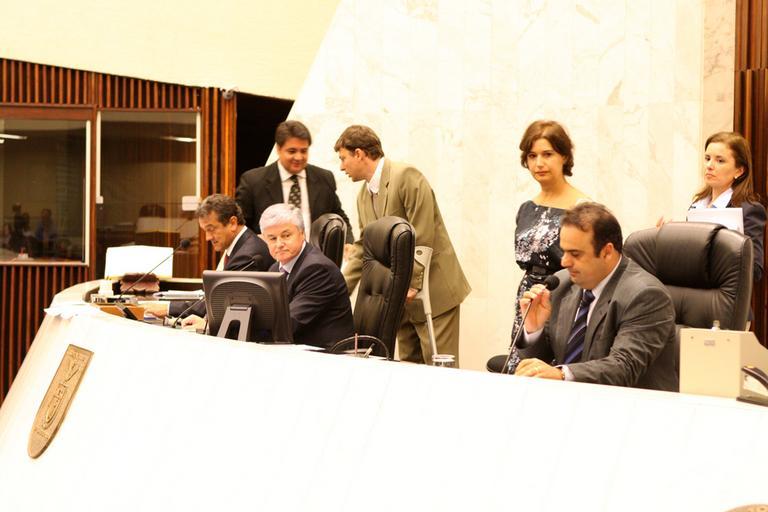 | Keywords: people O presidente da Assembleia Legislativa, deputado Valdir Rossoni (PSDB), convocou nesta segunda-feira (7), durante a sessão plenária, os líderes de bancada e dos blocos parlamentares para uma reunião nesta terça-feira (8), às 11 horas, para tratar de vários assuntos e discutir sugestões que serão levadas pelos participantes. Entre os assuntos em pauta deverá estar a indicação dos nomes que irão compor as comissões permanentes da Casa nesta legislatura. As indicações são feitas levando em consideração a proporcionalidade das representações. “Vamos reunir todos os líderes, falar do que aconteceu aqui na Casa nos últimos dias e ouvir as sugestões que eles têm a fazer para que possamos aperfeiçoar as ações que estão sendo implantadas”, disse Rossoni, durante entrevista a jornalistas. O presidente adiantou que entre as próximas medidas que serão implantadas está a análise minuciosa de todas as efetivações que aconteceram na Assembleia desde 1988. Fotos: Nani Gois / Assembleia Legislativa do Paraná O presidente da Assembleia Legislativa, deputado Valdir Rossoni (PSDB), convocou nesta segunda-feira (7), durante a sessão plenária, os líderes de bancada e dos blocos parlamentares para uma reunião nesta terça-feira (8), às 11 horas, para tratar de vários assuntos e discutir sugestões que serão levadas pelos participantes. Entre os assuntos em pauta deverá estar a indicação dos nomes que irão compor as comissões permanentes da Casa nesta legislatura. As indicações são feitas levando em consideração a proporcionalidade das representações. “Vamos reunir todos os líderes, falar do que aconteceu aqui na Casa nos últimos dias e ouvir as sugestões que eles têm a fazer para que possamos aperfeiçoar as ações que estão sendo implantadas”, disse Rossoni, durante entrevista a jornalistas. O presidente adiantou que entre as próximas medidas que serão implantadas está a análise minuciosa de todas as efetivações que aconteceram na Assembleia desde 1988. Fotos: Nani Gois / Assembleia Legislativa do Paraná |