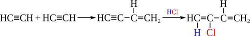 Keywords: Διμερισμός ακετυλενίου2.svg en C2H2 + C2H2 + HCl el Διμερισμός ακετυλενίου και ροσθήκη HCl own Xhmikos 5/9/2009 Reactions of hydrogen chloride Reactions of acetylene