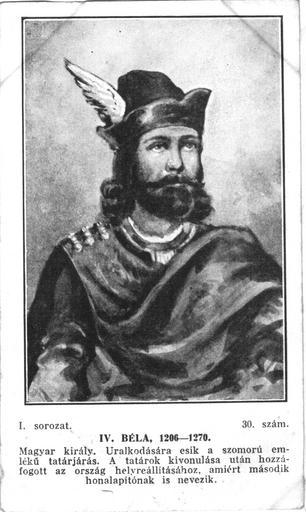 | Keywords: 30. IV. Béla.jpg hu A felvétel szkennelés 2012 június 7 én készült A képeslapsorozat korábbi tulajdonosa Bálint János Ócsa volt Az I sor 1 sz 1 sorozat 100 szám jelzetű képeslapok a 101 jelzetű füst albumot töltötték meg A képeslap sorozat képeit az 1920 as években adták ki Az ismeretlen szerző halála óta több mint 70 év telt el A képeslapok hátoldalán ex libris A sorozat képei 1 sz Gróf Széchenyi István 1791 1860 2 sz Deák Ferenc 1803 1876 2 sz 3 sz 4 sz 5 sz 6 sz 7 sz Felsőbükki Nagy Pál 1777 1857 8 sz Báró Eötvös József 1813 1871 9 sz Kossuth Lajos 1802 1894 10 sz Petőfi Sándor 1823 1849 11 sz Liszt Ferenc 1811 1886 12 sz Batthányy Lajos gróf 1806 1849 13 sz II Lajos 1506 1526 14 sz Munkácsy Mihály 1844 1900 15 sz Tisza Kálmán gróf 1830 1902 16 sz Mátyás király 1440 1490 17 sz Arany János 1817 1882 18 sz Tisza István gróf 1865 1918 19 sz Kölcsey Ferenc 1790 1838 20 sz Szinyei Merse Pál 1845 1920 21 sz Jókai Mór 1825 1904 22 sz Mikszáth Kálmán 1849 1910 23 sz Vörösmarty Mihály 1800 1855 24 sz Fadrusz János 1858 1903 25 sz Árpád a Honalapító 26 sz Szent István 975 -1038 27 sz Szent László 1040 - 1095 28 sz Könyves Kálmán 1070 1116 29 sz II Endre 1205 1235 30 sz IV Béla 1206 1270 31 sz Nagy Lajos 32 sz Hunyadi János 33 sz II Rákóczi Ferenc 34 sz Vak Bottyán 35 sz III Károly 36 sz II József 37 sz Madách Imre 38 sz Katona József 39 sz Csokonai Vitéz Mihály 40 sz Lotz Károly 41 sz Pöltenberg Ernő 42 sz Török Ignác 43 sz 44 sz 45 sz 46 sz 47 sz Aulich Lajos 48 sz Damjanich János 49 sz Dessewffy Arisztid 50 sz Lázár Vilmos 51 sz Kiss Ernő 52 sz Sweidel József 53 sz Vécsey Károly 54 sz Táncsics Mihály 55 sz Tompa Mihály 56 sz Rottenbiller Lipót 57 sz Szent Gellért 58 sz Szent Imre 59 sz Kapisztrán János 60 sz Kinizsi Pál 61 sz Tomori Pál 62 sz Zrinyi Miklós 63 sz Gábor Áron 64 sz Bem József 65 sz Bocskay István 66 sz Bethlen Gábor 67 sz József nádor 68 sz Kisfaludy Károly 69 sz Berzsenyi Dániel 70 sz Fáy András 71 sz Semmelweis Ignác 72 sz Egressy Gábor 73 sz Erkel Ferenc 74 sz Szilágyi Dezső 75 sz báró Bánffy Dezső 76 sz Ujházi Ede 77 sz Baross Gábor 78 sz id Wekerle Sándor 79 sz Justh Gyula 80 sz Prohászka Ottokár 81 sz Reményi Ede 82 sz Vámbéry Ármin 83 sz Rákosi Jenő 84 sz Eötvös Károly 85 sz Benczur Gyula 86 sz Blaha Lujza 87 sz Jászai Mari 88 sz Gárdonyi Géza 89 sz Ady Endre 90 sz Gyóni Géza 91 sz Báthori Zsigmond 92 sz Pázmány Péter 93 sz Kisfaludy Sándor 94 sz Goldmark Károly 95 sz Ferenc József 96 sz Erzsébet 97 sz Hermann Ottó 98 sz Lechner Ödön 99 sz Pósa Lajos 100 sz Móra Ferenc 101 jelzet füst album A felvétel és az egész sorozat képei megjelentek Creative Commons alatt a Metapolisz DVD sorozatban 2012-06-07 saját tulajdon author Custom license marker 2012 06 07 PD-old Uploaded with UploadWizard Béla IV of Hungary |