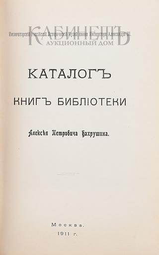 Каталог книг библиотеки Алексея Петровича Бахрушина. Выпуск I. Выпуск II. Выпуск дополнительный - Книги на иностранных языках. М., Типо-Литография Торгового Дома А.П. Коркин, 1911-1912.
