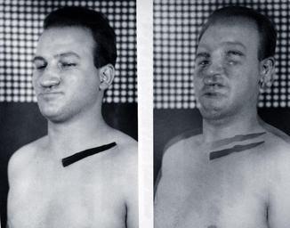 Keywords: monochrome indoor 330-PS-6457-1: Master Caption: U.S. Navy Studies Effects of Vibrations On Man. To study the effects of mechanical vibrations on man, the U.S. Navy has designed and constructed a research instrument termed a large displacement amplitude vibration machine. The Naval Research Laboratory, cooperating with the Naval Medical Research Institute, Bethesda, Maryland, has completed the first phase of the project by the construction, calibration, and testing of the instrument. Over five years in the building, the instrument has now been assembled and installed at the Naval Medical Research Institute where research studies are being undertaken by Lieutenant Commander David E. Goldman, MC, USN, (a Biophysicist). The two-ton instrument was designed to study low frequency vibrations. It is capable of producing smooth vibrations from two to 50 cycles per second. Constructed to handle loads of up to 200 pounds, the table-top vibrating platform moves vertically through a maximum of four inches at accelerations up to 15 units of gravity. Also, special built-in features allow the investigators to vary the cycles per second and the amplitude while the instrument is in operation, or to hold one and vary the other. As machinery with greater power concentrations is developed, the effects of vibration on operators and maintenance crews become more important. Aviators, operators of heavy construction equipment, operators of pneumatic tools, and of small-hand operated rills, buffing tools, etc., often complain of fatigue and discomfort. Occasionally, there is interference with vision and the ability to perform fine handwork. Little is known at this time as to just what effects vibration has on body tissue. Since the body is very complicated mechanical system, the problem is extremely difficult. The investigators in their studies up to this time have found that different parts of the body respond maximally at different speeds. Studies are now underway to map the mechanical structure of the body and its vibratory motion at various settings of the vibration machine. Studies will then be made of physiological and psychological responses. With this information, it will be possible to establish safety and tolerance limits as well as to devise protective measures when indicated. Subject is shown before vibration; then during vibration. Photograph released January 19, 1954. (4/14/2015). 330-PS-6457-1: Master Caption: U.S. Navy Studies Effects of Vibrations On Man. To study the effects of mechanical vibrations on man, the U.S. Navy has designed and constructed a research instrument termed a large displacement amplitude vibration machine. The Naval Research Laboratory, cooperating with the Naval Medical Research Institute, Bethesda, Maryland, has completed the first phase of the project by the construction, calibration, and testing of the instrument. Over five years in the building, the instrument has now been assembled and installed at the Naval Medical Research Institute where research studies are being undertaken by Lieutenant Commander David E. Goldman, MC, USN, (a Biophysicist). The two-ton instrument was designed to study low frequency vibrations. It is capable of producing smooth vibrations from two to 50 cycles per second. Constructed to handle loads of up to 200 pounds, the table-top vibrating platform moves vertically through a maximum of four inches at accelerations up to 15 units of gravity. Also, special built-in features allow the investigators to vary the cycles per second and the amplitude while the instrument is in operation, or to hold one and vary the other. As machinery with greater power concentrations is developed, the effects of vibration on operators and maintenance crews become more important. Aviators, operators of heavy construction equipment, operators of pneumatic tools, and of small-hand operated rills, buffing tools, etc., often complain of fatigue and discomfort. Occasionally, there is interference with vision and the ability to perform fine handwork. Little is known at this time as to just what effects vibration has on body tissue. Since the body is very complicated mechanical system, the problem is extremely difficult. The investigators in their studies up to this time have found that different parts of the body respond maximally at different speeds. Studies are now underway to map the mechanical structure of the body and its vibratory motion at various settings of the vibration machine. Studies will then be made of physiological and psychological responses. With this information, it will be possible to establish safety and tolerance limits as well as to devise protective measures when indicated. Subject is shown before vibration; then during vibration. Photograph released January 19, 1954. (4/14/2015). |