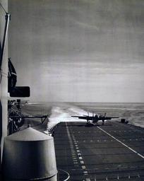 Keywords: 330-PS-800 (USN 707981): U.S. Navy’s Heaviest Carrier Plane Completes Trial Landings. The U.S. Navy’s latest and heaviest carrier aircraft, AJ-1, attack bomber, comes in for a landing on the flight deck of USS Coral Sea (CV 43), on which the plane has successfully completed trial landings, October 28, 1950. An unloaded, AJ-1, weighing in excess of 17 tons became the heaviest aircraft ever to land onboard a U.S. Navy carrier when it was set down on Coral Sea’s flight deck in exercises off the Virginia Capes. Manufactured by North American Aviation Inc, at its Downey California Plant, the AJ-1 is designed for high-speed attack missions from aircraft carriers. It has a top speed in excess of 250 miles an hour, and carries a crew of three seated in a pressurized cockpit. The unique piston-jet power arrangement of the AJ-1 includes two conventional Pratt and Whitney R-2800 reciprocating engines located under the wings and a single Allison J-33 Turbo-Jet mounted in the after section of the fuselage. (7/8/2015). 330-PS-800 (USN 707981): U.S. Navy’s Heaviest Carrier Plane Completes Trial Landings. The U.S. Navy’s latest and heaviest carrier aircraft, AJ-1, attack bomber, comes in for a landing on the flight deck of USS Coral Sea (CV 43), on which the plane has successfully completed trial landings, October 28, 1950. An unloaded, AJ-1, weighing in excess of 17 tons became the heaviest aircraft ever to land onboard a U.S. Navy carrier when it was set down on Coral Sea’s flight deck in exercises off the Virginia Capes. Manufactured by North American Aviation Inc, at its Downey California Plant, the AJ-1 is designed for high-speed attack missions from aircraft carriers. It has a top speed in excess of 250 miles an hour, and carries a crew of three seated in a pressurized cockpit. The unique piston-jet power arrangement of the AJ-1 includes two conventional Pratt and Whitney R-2800 reciprocating engines located under the wings and a single Allison J-33 Turbo-Jet mounted in the after section of the fuselage. (7/8/2015).