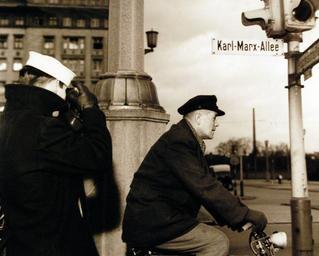 Keywords: monochrome 330-PSA-28-62 (USN 1059101): Berlin Crisis of 1961. In tourist fashion, one of the reservists who got a first-hand look at life behind the wall takes time to photograph an East German riding his bicycle down the sidewalk of Karl-Marx-Allee. Master Caption: One hundred seventy-two U.S. Naval Reservists called to active duty in 1961 because of the Berlin Crisis visited Berlin January 12 and 13 for a first-hand look at the Berlin situation. The reservists breakfasted with the district mayors of Keukoeln and were welcomed to the city by Major General Albert Watson II, U.S. Commander, Berlin, who briefed them of the U.S. Army’s mission in Germany. For lunch they were guests of the Third Battle Group, 6th Infantry, of the U.S. Army’s Berlin Brigade. During the day, they toured West and East Berlin, visited the Army’s tank park and witnessed a weapons demonstration. The Reservists are crewmen of four Naval Reserve Training Ships which were activated in the fall. The ships, all destroyers: USS Hunt; USS Millar; USS Robinson; and USS Remey. Photograph released January 29, 1962. (9/29/2015). 330-PSA-28-62 (USN 1059101): Berlin Crisis of 1961. In tourist fashion, one of the reservists who got a first-hand look at life behind the wall takes time to photograph an East German riding his bicycle down the sidewalk of Karl-Marx-Allee. Master Caption: One hundred seventy-two U.S. Naval Reservists called to active duty in 1961 because of the Berlin Crisis visited Berlin January 12 and 13 for a first-hand look at the Berlin situation. The reservists breakfasted with the district mayors of Keukoeln and were welcomed to the city by Major General Albert Watson II, U.S. Commander, Berlin, who briefed them of the U.S. Army’s mission in Germany. For lunch they were guests of the Third Battle Group, 6th Infantry, of the U.S. Army’s Berlin Brigade. During the day, they toured West and East Berlin, visited the Army’s tank park and witnessed a weapons demonstration. The Reservists are crewmen of four Naval Reserve Training Ships which were activated in the fall. The ships, all destroyers: USS Hunt; USS Millar; USS Robinson; and USS Remey. Photograph released January 29, 1962. (9/29/2015). |