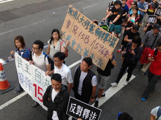| Keywords: 香港各界發起反人大釋法大遊行和集會 34.jpg zh-tw 中 人大常委 11 7日將就香港 年新政兩位議員宣誓風波,對基 法 宣誓 例宣布釋法內容之際,香港民間人權陣線星 天發起各界 反對釋法大遊行 和集 ,抗議人大 香港高等法院審理 宣誓風波司法覆核案 間,主動對基 法第104 釋法,破壞香港獨立的司法制度 香港民陣發起反釋法大遊行後,數以千計的示威 繼續遊行到西環的中聯辦抗議人大釋法 8點半左右,示威 手舉雨傘再次沖擊警方防線,警方則狂噴辣椒噴劑還擊 警方調派大批警員增援,並將配備防暴頭盔的警員派至 線與示威 對峙 警方不斷呼籲示威 持冷 ,不要 擊警方防線,要求示威 盡快離開 9點前, 中聯辦外與警察對峙的示威 突然撤離,輕 西 警署外的徳輔道西和西邊街道口,現場雙向交 中斷, 場自2014年雨傘運動後的佔領行動 醞 中,現場至少 幾千之 十多分鐘後,警方開始廣 播,要求佔路人士離開 示威 9點過後佔據了中聯辦外 段德輔道,並 中聯辦後 外與警方防線展開推撞,警方用辣椒噴 還擊將示威 防線推後 示威 不斷呼喊反對釋法 警方 中聯辦西邊的 光街路口佈署第二道防線,並 警員從路旁的西 警署裡向警察傳遞防暴盾牌 步部署防線 目前還不清楚警方何時清場 2016-11-06 16 18 14 http //www voachinese com/a/hk-protest-20161106/3583208 html 海彥 other versions Custom license marker 2016 11 06 PD-USGov-VOA Oppose the interpretation of Basic Law protest |