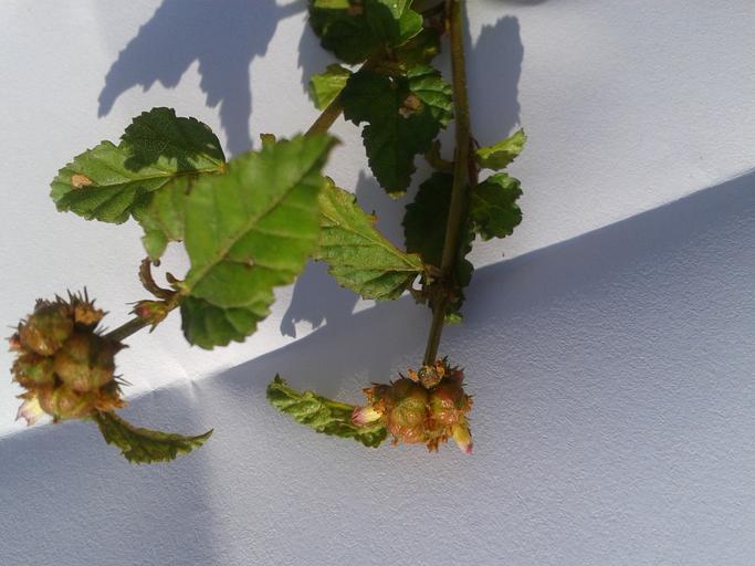 | Keywords: பிண்ணாக்குக் கீரை3.jpg  en Botanical name - Melochia corchorifolia Common name  Chocolate weed According to researches Leaves have Triterpenes Flavonol Glycosides etc Leaves are consumed as a potherb; Dried leaves are source of Protein; Leaves are used to treat Ulcers Abdominal swelling and Headache and Chest pain; Roots and leaves are useful for Snakebites and Wounds; This plant is a source of fibre for making bags ; Stems are used for tying bundles In picture - Flowers and unripe fruits of Melochia corchorifolia ta பிண்ணாக்குக் க ரை இலை க ரையாகச் சமைத்து உண்ணத் தக்கது;வயிற்றுப் புண்ணை இக் க ரை ஆற்றும்; விரை வ க்கத்திற்கு இக் க ரை மருந்து;நெஞ்சு வலிக்கும் இக் க ரையை உண்ணலாம்; பாம்புகடி மருந்தாக வேரும் இலையும் பயன்படுகிறது; பிண்ணாக்குக் க ரையில் புரதச் சத்து உள்ளது; தண்டுப் பகுதிகளைக் கட்டும் கயிறாகப் பயன்படுத்துவர் ;நோய் ந க்கும் சில இரசாயனப் பொருள்களை இத் தாவரம் கொண்டுள்ளது படம் - நுனியில் வெளிர் சிவப்பும் அடியில் வெள்ளையும் கொண்ட மூன்று பூக்களுடன் பிண்ணாக்குக் க ரை own Dr S Soundarapandian 2014-03-30 Own research Shot in Chennai Tamilnadu India 4 5 kms off sea-shore ;Latitude-13°02'20 N ; Longitude- 80°13'43 E ; Elevation from sea level - 6 7 m Melochia corchorifolia Unripe fruits Cc-zero |