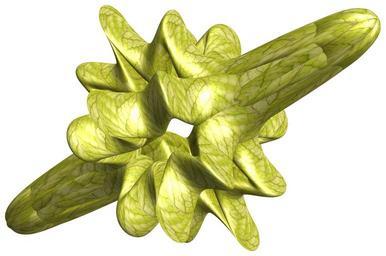 | Keywords: mathematica 3d cg parametricplot3d texture torus 輪環 りんかん ドーナツ どーなつ 八芒星 はちぼうせい 八光星 はちこうせい 八稜星 はちりょうせい program プログラム code コード algorithm コード アルゴリズム geometric sculpture geometricsculpture shape geometry sculpture mapping テクスチャ マッピング 模様 もよう design pattern デザイン パターン graphic グラフィック グラフィクス structure 意匠 構造 symmetry 対称性 たいしょうせい シンメトリー 対称 たいしょう algorithm white background organic pattern a = 4; (* center hole size of torus *) b = 8; (* octa-torus *) d = 3; (* number of torus *) SetOptions[ParametricPlot3D, PlotRange -> Full, Mesh -> None, Boxed -> False, Axes -> None, PlotPoints -> 400, ImageSize -> 3000, PlotStyle -> Directive[Specularity[White, 30], Texture[Import["D:/tmp/71.jpg"]]], TextureCoordinateFunction -> ({#4, #5 b Pi} &), Lighting -> "Neutral"]; g[v_] := Sum[Cos[(2 k - 1) v]/(2 k - 1), {k, 4}]; x = (a - Cos[t] - Sin[b s]) g[s + Pi/(2 b)]; y = Sin[t]; z = (a - Cos[t] - Sin[b s]) Sin[s + Pi/(2 b)]; rot = Table[{x, y, z}.RotationMatrix[2 i Pi/d, {1, 0, 0}], {i, d}]; ParametricPlot3D[rot, {t, 0, 2 Pi}, {s, 0, 2 Pi}] (*--- The Texture The g[] is a 4-partial sum of the Fourier series for Square wave. g[]は矩形波のフーリエ展開の最初の4項 *) a = 4; (* center hole size of torus *) b = 8; (* octa-torus *) d = 3; (* number of torus *) SetOptions[ParametricPlot3D, PlotRange -> Full, Mesh -> None, Boxed -> False, Axes -> None, PlotPoints -> 400, ImageSize -> 3000, PlotStyle -> Directive[Specularity[White, 30], Texture[Import["D:/tmp/71.jpg"]]], TextureCoordinateFunction -> ({#4, #5 b Pi} &), Lighting -> "Neutral"]; g[v_] := Sum[Cos[(2 k - 1) v]/(2 k - 1), {k, 4}]; x = (a - Cos[t] - Sin[b s]) g[s + Pi/(2 b)]; y = Sin[t]; z = (a - Cos[t] - Sin[b s]) Sin[s + Pi/(2 b)]; rot = Table[{x, y, z}.RotationMatrix[2 i Pi/d, {1, 0, 0}], {i, d}]; ParametricPlot3D[rot, {t, 0, 2 Pi}, {s, 0, 2 Pi}] (*--- The Texture The g[] is a 4-partial sum of the Fourier series for Square wave. g[]は矩形波のフーリエ展開の最初の4項 *) |