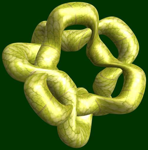 | Keywords: mathematica 3d cg parametricplot3d texture torus 輪環 りんかん ドーナツ どーなつ 三芒星 さんぼうせい 三光星 さんこうせい 三稜星 さんりょうせい code program algorithm コード プログラム アルゴリズム geometric sculpture geometricsculpture shape geometry sculpture mapping テクスチャ マッピング 模様 もよう abstract 抽象 ちゅうしょう アブストラクト design pattern デザイン パターン graphic グラフィック グラフィクス structure 意匠 構造 symmetry 対称性 たいしょうせい シンメトリー 対称 たいしょう algorithm コード black background indoor organic pattern a = 4; (* center hole size of a torus *) b = 3; (* tri-torus *) c = -2; (* distance from the center of rotation *) d = 3; (* number of torus *) h = 1; (* height of a torus *) SetOptions[ParametricPlot3D, PlotRange -> Full, Mesh -> None, Boxed -> False, Axes -> False, PlotPoints -> 400, ImageSize -> 3000, Background -> Darker[Green, 0.8], PlotStyle -> Directive[Specularity[White, 30], Texture[Import["D:/tmp/71.jpg"]]], TextureCoordinateFunction -> ({#4, #5 b Pi} &), Lighting -> "Neutral"]; f[v_] := Sin[2 Sin[Sin[Sin[v]]]]; x = (a - Cos[t] - f[b s]) Cos[s + Pi/b]; y = (a - Cos[t] - f[b s]) Sin[s + Pi/b]; z = (a - Sin[t] - h f[b s]) + c; rm = Table[{x, y, z}.RotationMatrix[2 i Pi/d, {1, 0, 0}], {i, d}]; ParametricPlot3D[rm, {t, 0, 2 Pi}, {s, 0, 2 Pi}] (*--- The Texture *) a = 4; (* center hole size of a torus *) b = 3; (* tri-torus *) c = -2; (* distance from the center of rotation *) d = 3; (* number of torus *) h = 1; (* height of a torus *) SetOptions[ParametricPlot3D, PlotRange -> Full, Mesh -> None, Boxed -> False, Axes -> False, PlotPoints -> 400, ImageSize -> 3000, Background -> Darker[Green, 0.8], PlotStyle -> Directive[Specularity[White, 30], Texture[Import["D:/tmp/71.jpg"]]], TextureCoordinateFunction -> ({#4, #5 b Pi} &), Lighting -> "Neutral"]; f[v_] := Sin[2 Sin[Sin[Sin[v]]]]; x = (a - Cos[t] - f[b s]) Cos[s + Pi/b]; y = (a - Cos[t] - f[b s]) Sin[s + Pi/b]; z = (a - Sin[t] - h f[b s]) + c; rm = Table[{x, y, z}.RotationMatrix[2 i Pi/d, {1, 0, 0}], {i, d}]; ParametricPlot3D[rm, {t, 0, 2 Pi}, {s, 0, 2 Pi}] (*--- The Texture *) |