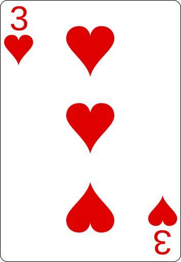 | Keywords: 3 of hearts.svg en Vector graphics poker card 2011-03 https //code google com/p/vector-playing-cards/ vector-playing-cards on Google Code Byron Knoll other versions Custom license marker 2015 01 15 Byron Knoll Playing cards set by Byron Knoll Uploaded with UploadWizard 3 of Hearts |