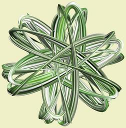 | Keywords: mathematica 3d cg parametricplot3d texture torus code program algorithm プログラム コード アルゴリズム 輪環 りんかん ドーナツ どーなつ トーラス とーらす knot 結び目 むすびめ mapping テクスチャ マッピング 模様 もよう design pattern デザイン パターン graphic グラフィック グラフィクス structure 意匠 構造 symmetry 対称性 たいしょうせい シンメトリー 対称 たいしょう white background drawing indoor illustration a = 6; (* center hole size of a torus *) b1 = 5;(* the number of angles *) b2 = 4;(* the number of waves *) b3 = 6; (* the number of knots *) c = 0; (* distance from the center of rotation *) d = 3; (* the number of tori *) h1 = 2; (* width of a torus *) h2 = 2; (* width of a torus *) h3 = 30; (* height of cross *) SetOptions[ParametricPlot3D, PlotRange -> Full, Mesh -> None, Boxed -> False, Axes -> None, PlotPoints -> 500, ImageSize -> 3000, Background -> RGBColor[{240, 240, 200}/255], PlotStyle -> Directive[Specularity[White, 50], Texture[Import["D:/tmp/911.jpg"]]], TextureCoordinateFunction -> ({#4, #5 /Pi} &), Lighting -> "Neutral"]; x = (a - h1 Cos[t] + h2 Sin[b1 s]) Cos[b3 s] + c; y = (a - h1 Cos[t] + h2 Sin[b1 s]) Sin[b3 s] + c; z = h3 Cos[b1 s] + Sin[b2 t] + c; rm = Table[{x, y, z}.RotationMatrix[2 i Pi/d, {1, 1, 0}], {i, d}]; ParametricPlot3D[rm, {t, 0, 2 Pi}, {s, 0, 2 Pi}] (*--- The Texture *) a = 6; (* center hole size of a torus *) b1 = 5;(* the number of angles *) b2 = 4;(* the number of waves *) b3 = 6; (* the number of knots *) c = 0; (* distance from the center of rotation *) d = 3; (* the number of tori *) h1 = 2; (* width of a torus *) h2 = 2; (* width of a torus *) h3 = 30; (* height of cross *) SetOptions[ParametricPlot3D, PlotRange -> Full, Mesh -> None, Boxed -> False, Axes -> None, PlotPoints -> 500, ImageSize -> 3000, Background -> RGBColor[{240, 240, 200}/255], PlotStyle -> Directive[Specularity[White, 50], Texture[Import["D:/tmp/911.jpg"]]], TextureCoordinateFunction -> ({#4, #5 /Pi} &), Lighting -> "Neutral"]; x = (a - h1 Cos[t] + h2 Sin[b1 s]) Cos[b3 s] + c; y = (a - h1 Cos[t] + h2 Sin[b1 s]) Sin[b3 s] + c; z = h3 Cos[b1 s] + Sin[b2 t] + c; rm = Table[{x, y, z}.RotationMatrix[2 i Pi/d, {1, 1, 0}], {i, d}]; ParametricPlot3D[rm, {t, 0, 2 Pi}, {s, 0, 2 Pi}] (*--- The Texture *) |