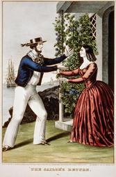| Keywords: photo border On 2 February 1848, the Treaty of Guadalupe Hidalgo ended the Mexican-American War. Ratified by the Senate in March, it provided the U.S. boundary be set at the Rio Grande in Texas and the title of New Mexico and Upper California be transferred. In exchange, Mexico received fifteen million dollars in compensation for the territory and the U.S. agreed to assume claims from private citizens of these areas against the Mexican government. The sailor's return. New York : Published by N. Currier, c1847. Courtesy of the Library of Congress, LC-USZC2-2980. On 2 February 1848, the Treaty of Guadalupe Hidalgo ended the Mexican-American War. Ratified by the Senate in March, it provided the U.S. boundary be set at the Rio Grande in Texas and the title of New Mexico and Upper California be transferred. In exchange, Mexico received fifteen million dollars in compensation for the territory and the U.S. agreed to assume claims from private citizens of these areas against the Mexican government. The sailor's return. New York : Published by N. Currier, c1847. Courtesy of the Library of Congress, LC-USZC2-2980. |