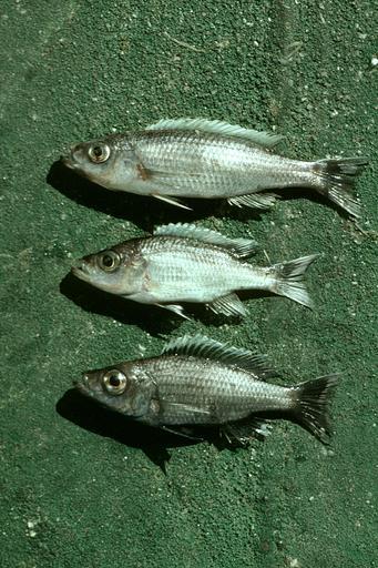 Keywords: 3diplos.jpg Diplotaxodon species from Lake Malawi Mature males of Diplotaxodon limnothrissa top D apogon middle and D macrops bottom collected from a trawl catch in southern Lake Malawi Own Dlimnothrissa 1991 Diplotaxodon