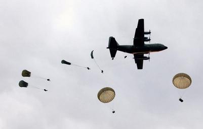 | Keywords: 3RAR 2005 DN-SD-06-10039.jpg  en Australian Army Soldiers 3rd Royal Australian Regiment conduct a dawn static line parachute jump from a C-130 Hercules cargo aircraft over the Shoalwater Bay Training Area SWBTA in Rockhampton Australia as part of exercise TALISMAN SABRE 2005 TALISMAN SABRE is an exercise jointly sponsored by the US Pacific Command USPACOM and Australian Defense Force Joint Operations Command and designed to train the US 7th Fleet Commander's staff and Australian Joint Operations staff as a designated Combined Task Force CTF headquarters The exercise focuses on crisis action planning and execution of contingency response operations USPACOM units and Australian forces will conduct land sea and air training throughout the training area More than 11 000 US and 6 000 Australian personnel will participate 2005-06-18 http //www dodmedia osd mil/Assets/Still/2006/Navy/DN-SD-06-10039 JPEG ID DN-SD-06-10039 Service Depicted 050618-N-0000P-205 U S Navy photo 150px PD-USGov Talisman Sabre 2005 3rd Battalion Royal Australian Regiment Australian Army Static line parachuting |