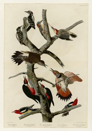 | Keywords: 416 I. Hairy Woodpecker - 2. Red-bellied Woodpecker - 3. Red-shafted Woodpecker - 4. Lewis' Woodpecker - 5. Red-breasted Woodpecker.jpg LargeImage 415_I _Brown_Creeper_-_2 _Californian_Nuthatch jpg 417_I _Maria's_Woodpecker_-_2 _Three-toed_Woodpecker_-_3 _Phillips'_Woodpecker_-_4 _Canadian_Woodpecker_-_5 _Harris's_Woodpecker_-_6 _Audubon's_Woodpecker jpg Plate 416 of Birds of America by John James Audubon depicting I Hairy Woodpecker - Red-bellied Woodpecker - Red-shafted Woodpecker - Lewis' Woodpecker - Red-breasted Woodpecker http //images library pitt edu/cgi-bin/i/image/image-idx view entry;cc audimg;entryid x-aud0416 University of Pittsburgh 1827-1838 creator John James Audubon PD-old-100 The Birds of America |
