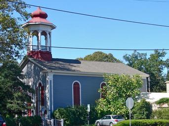 Keywords: 417 Lafayette Onion Presby CMHD.jpg en Cape Island Presbyterian Church 1853 At 417 Lafayette Street now used as a theater Built 1853 Wooden construction with an onion-style cupola 1st of 2 churches built by the congregation In Cape May Historic District a US Historic Landmark District in Cape May city Cape May County New Jersey 2011-08-30 own Smallbones cc-zero Uploaded_with_UploadWizard Cape_May_Historic_District Churches in Cape May County New Jersey |