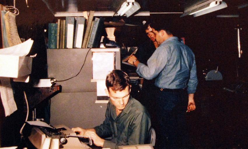 | Keywords: 428-GX-K-58223: Vung Tau, Republic of Vietnam. Crewmen of Helicopter Light Attack Squadron Three (HAL-3) work in the hangar. Photographed by JOSN John W. Fletcher, September 4, 1968. Official U.S. Navy Photograph, now in the collections of the National Archives. (2016/01/12). Note: Photographed from reference card only. 428-GX-K-58223: Vung Tau, Republic of Vietnam. Crewmen of Helicopter Light Attack Squadron Three (HAL-3) work in the hangar. Photographed by JOSN John W. Fletcher, September 4, 1968. Official U.S. Navy Photograph, now in the collections of the National Archives. (2016/01/12). Note: Photographed from reference card only. |