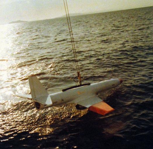 | Keywords: outdoor 428-GX-KN-26000_Box 875: AN MQM-107A “Streaker Variable-Speed Training Target” is lifted from the water during water retrieval methods testing off Port Hueneme, California. Photographed by PHAA Marvin Clark, January 21, 1977. Photographed from reference card. (2015/12/22). 428-GX-KN-26000_Box 875: AN MQM-107A “Streaker Variable-Speed Training Target” is lifted from the water during water retrieval methods testing off Port Hueneme, California. Photographed by PHAA Marvin Clark, January 21, 1977. Photographed from reference card. (2015/12/22). |
