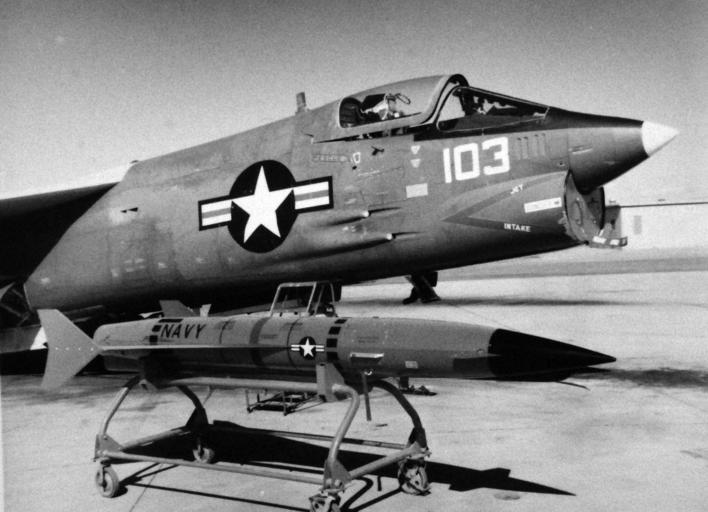 | Keywords: blackandwhite monochrome airplane vehicle aircraft black and white 428-GX-KN-35027: An AQM-37 missile target system on a stand beside an F-8 “Crusader” fighter aircraft at Point Mugu, California. Photographed by PH2 Cornish, March 7, 1969. U.S. Navy photograph, now in the collections of the National Archives. (Black and White Only.) (2015/12/15). 428-GX-KN-35027: An AQM-37 missile target system on a stand beside an F-8 “Crusader” fighter aircraft at Point Mugu, California. Photographed by PH2 Cornish, March 7, 1969. U.S. Navy photograph, now in the collections of the National Archives. (Black and White Only.) (2015/12/15). |