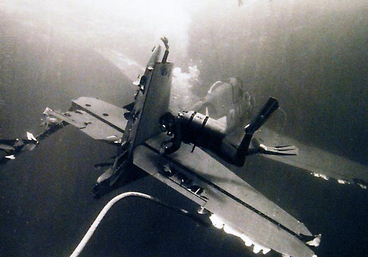 | Keywords: 428-GX-USN 1145843: Divers position themselves to prepare a World War II U.S. Navy F6F “Hellcat” fighter aircraft for hoisting to the surface. The Undersea Research Vehicle Deep Quest discovered the fighter, lost in 1944 in 3,400 feet of water twelve miles off the coast of San Diego, California. Deep Quest attached a line to the aircraft to enable auxiliary repair dry dock USS White Sands (ARD-20) to winch the fighter to the surface. Photographed by Lockheed Missiles and Space Company, October 1970. U.S. Navy Photograph, now in the collections of the National Archives. (2016/05/10). 428-GX-USN 1145843: Divers position themselves to prepare a World War II U.S. Navy F6F “Hellcat” fighter aircraft for hoisting to the surface. The Undersea Research Vehicle Deep Quest discovered the fighter, lost in 1944 in 3,400 feet of water twelve miles off the coast of San Diego, California. Deep Quest attached a line to the aircraft to enable auxiliary repair dry dock USS White Sands (ARD-20) to winch the fighter to the surface. Photographed by Lockheed Missiles and Space Company, October 1970. U.S. Navy Photograph, now in the collections of the National Archives. (2016/05/10). |