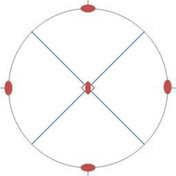 Keywords: -42m point group.png en Stereographic représentation of the symmetry point group -42m The 001 direction is perpendicular to the projection plane The mirror planes are represented in blue the rotation axes in red The thin black ticks show the direction of the equivalent crystallographic axes a and b fr Représentation stéréographique du groupe ponctuel de symétrie -42m La direction 001 est perpendiculaire au plan de projection Les plans miroirs sont représentés en bleu les axes de rotation en rouge Les trait fins noirs montrent la direction des axes cristallographiques équivalents a et b own Perditax 2011-06-05 Point groups Cc-zero |