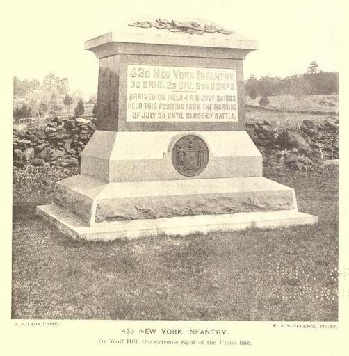 | Keywords: 43rd NY Infantry p330.jpg en 43rd New York Infantry Monument Gettysburg Battlefield New York Monuments Commission Final Report on the Battlefield of Gettysburg Volume 1 Albany NY J B Lyons Company 1902 opp p 330 https //archive org/stream/finalreportongettys01burgrich page/n7/mode/2up New York Monuments Commission Final Report on the Battlefield of Gettysburg Volume 1 Albany NY J B Lyons Company 1902 F J Severence photographer 1902 PD-Old Battle of Gettysburg memorials New York 043 PD-US |