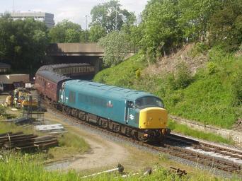 | Keywords: 45135 on the ELR at Bury.jpg Class 45 diesel locomotive 45135 on the East Lancashire Railway at Bury Own 2007-06-02 Dave Root 53 589834 -2 30148 British Rail Class 45s on the East Lancashire Railway 45135 British Rail Class 45s in British Rail blue livery 45135 British Rail Class 45 D99 TOPS 45135 Bury Bolton Street railway station Blue and yellow locomotives |
