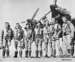 Keywords: 462 Squadron RAAF aircrew Sept 1942.jpg AWM caption A Handley Page Halifax heavy bomber squadron No 462 Squadron RAAF operating in the Middle East Command is manned by flying crews from all over the Empire <br> Left to right Sergeant Sgt N Dear of Dundee Scotland pilot Flight Sergeant Flt Sgt N L Foster of Hamilton New Zealand bomb aimer Sgt R W Williams of Liverpool England flight engineer Sgt P Beever of Horsham Sussex England rear gunner Flt Sgt W J Cole of Brisbane Qld mid-upper gunner Flt Sgt P E Godfrey of St John's Newfoundland wireless operator Sgt F H Fishpool of Gloucester England navigator MED0842 1942-09 Not stated PD-Australia No 462 Squadron RAAF Handley Page Halifax in Australian service Handley Page Halifax B Mark II World War II people of the Royal Australian Air Force British Commonwealth Air Training Plan South African Air Force in World War II Black and white portrait photographs of military people in uniform Black and white photographs ImageNote 1 7 135 67 219 450 375 2 Sergeant Sgt N Dear of Dundee Scotland pilot ImageNoteEnd 1 ImageNote 2 76 139 62 210 450 375 2 Flight Sergeant Flt Sgt N L Foster of Hamilton New Zealand bomb aimer ImageNoteEnd 2 ImageNote 3 143 139 57 209 450 375 2 Sgt R W Williams of Liverpool England flight engineer ImageNoteEnd 3 ImageNote 4 204 128 53 224 450 375 2 Sgt P Beever of Horsham Sussex England rear gunner ImageNoteEnd 4 ImageNote 5 260 120 44 233 450 375 2 Flt Sgt W J Cole of Brisbane Qld mid-upper gunner ImageNoteEnd 5 ImageNote 6 309 106 55 245 450 375 2 Flt Sgt P E Godfrey of St John's Newfoundland wireless operator ImageNoteEnd 6 ImageNote 7 370 100 76 250 450 375 2 Sgt F H Fishpool of Gloucester England navigator ImageNoteEnd 7 Navigators aircraft Group photographs with aircraft military Radio operators aircraft Air gunners Handley Page Halifax aircrew |