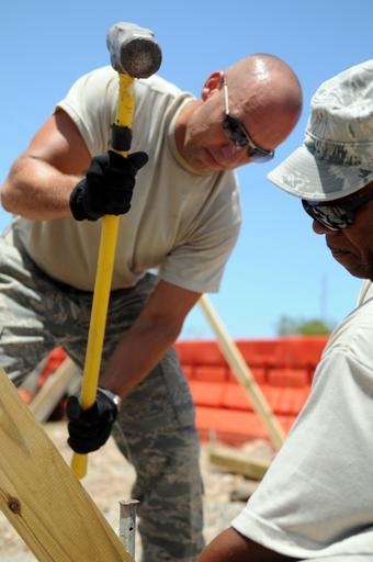 Keywords: 474th Expeditionary Civil Engineering Squadron Construction DVIDS297418.jpg en Air Force Master Sgt Edward Davenport the 474th Expeditionary Civil Engineering Squadron ™s structural supervisor uses a sledgehammer to set a metal rod to hold a beam in place for a vehicle checkpoint structure July 6 The 474th ECES supports Joint Task Force Guantanamo by maintaining the Expeditionary Legal Complex and Camp Justice facilities and infrastructure JTF Guantanamo conducts safe humane legal and transparent care and custody of detainees including those convicted by military commission and those ordered released by a court The JTF conducts intelligence collection analysis and dissemination for the protection of detainees and personnel working in JTF Guantanamo facilities and in support of the War on Terror JTF Guantanamo provides support to the Office of Military Commissions to law enforcement and to war crimes investigations The JTF conducts planning for and on order responds to Caribbean mass migration operations 2010-07-06 Petty Officer 3rd Class Joshua Nistas https //www dvidshub net/image/297418 100706-N-+++++-141 2010-07-08 15 20 GUANTANAMO BAY CU PD-USGov-Military-Navy Joint Task Force Guantanamo Guantanamo Bay Images from DoD uploaded by Fæ