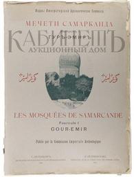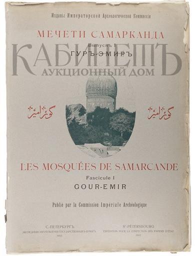 Keywords: мечеть самарканд веселовский н.и. веселовскийни аукцион гур-эмир гурэмир тамерлан 1905 библиотека на продажу библиотеканапродажу text writing Архив аукциона №16(58) Лот 239 [Веселовский Н.И.] Мечети Самарканда. Выпуск I (единственный). Гур-Эмир. Издание Императорской Археологической Комиссии. Посвящается Ее Императорскому Величеству Государыне Александре Федоровне. СПб., Экспедиция Заготовления Государственных бумаг, 1905. [Les Mosquées de Samarcande. Fascicule I. Gour-Emir. Publiè par la Commission imperial Archeologique. St-Pètersbourg, Expèdition pour la confection des papiers d`etat, 1905.] Формат издания: 75,3 х 54 см. [4], IX с., 18 л. ил. (на одном листе и разворотах). Первое издание. Заглавие на русском, французском и арабском языках. Текст на русском и французском языках. Экземпляр в издательской бумажной обложке, незначительные надрывы и загибы на верхней обложке, реставрация с оборотной стороны скотчем, корешок утрачен. Некоторые иллюстрации на развороте надорваны. В книге «Мечети Самарканда» в цветных таблицах показаны орнаменты гробницы Тимура (Тамерлана) в Самарканде. Гур-Эмир – мавзолей азиатского завоевателя Тамерлана (Тимура) в Самарканде, воздвигнут в юго-западной части города в 1404 г. Веселовский Николай Иванович (1848-1918) – археолог, востоковед-арабист. Его большая исследовательская работа по Средней Азии была завершена в 1905 году изданием первого выпуска атласа архитектурных материалов «Мечети Самарканда». Предварительная оценка: 25 000 – 32 000 р. Цена продажи: 55 000 р. www.kabinet-auktion.com/auction/books16/239/ Архив аукциона №16(58) Лот 239 [Веселовский Н.И.] Мечети Самарканда. Выпуск I (единственный). Гур-Эмир. Издание Императорской Археологической Комиссии. Посвящается Ее Императорскому Величеству Государыне Александре Федоровне. СПб., Экспедиция Заготовления Государственных бумаг, 1905. [Les Mosquées de Samarcande. Fascicule I. Gour-Emir. Publiè par la Commission imperial Archeologique. St-Pètersbourg, Expèdition pour la confection des papiers d`etat, 1905.] Формат издания: 75,3 х 54 см. [4], IX с., 18 л. ил. (на одном листе и разворотах). Первое издание. Заглавие на русском, французском и арабском языках. Текст на русском и французском языках. Экземпляр в издательской бумажной обложке, незначительные надрывы и загибы на верхней обложке, реставрация с оборотной стороны скотчем, корешок утрачен. Некоторые иллюстрации на развороте надорваны. В книге «Мечети Самарканда» в цветных таблицах показаны орнаменты гробницы Тимура (Тамерлана) в Самарканде. Гур-Эмир – мавзолей азиатского завоевателя Тамерлана (Тимура) в Самарканде, воздвигнут в юго-западной части города в 1404 г. Веселовский Николай Иванович (1848-1918) – археолог, востоковед-арабист. Его большая исследовательская работа по Средней Азии была завершена в 1905 году изданием первого выпуска атласа архитектурных материалов «Мечети Самарканда». Предварительная оценка: 25 000 – 32 000 р. Цена продажи: 55 000 р. www.kabinet-auktion.com/auction/books16/239/