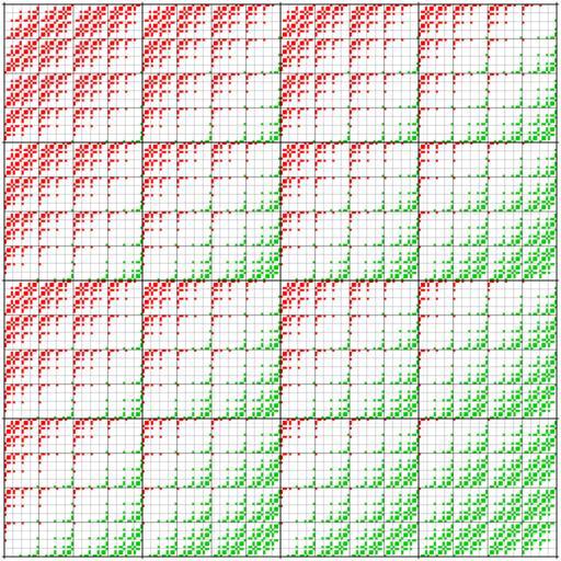 | Keywords: 4-ary Boolean functions; matrix weight 5, 11.svg 4-ary Boolean functions with Hamming weight 5 red and 11 green in a 256×256 matrix organized like a 16-cube Hasse diagram Inkscape-hand a -Boolean Bin2svg own 2012 Mate2code 4-ary Boolean functions; matrix weight |