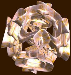 | Keywords: mathematica 3d cg parametricplot3d texture torus 輪環 りんかん ドーナツ どーなつ 六芒星 ろくぼうせい 六光星 ろくこうせい 六稜星 ろくりょうせい code program algorithm コード プログラム アルゴリズム hexagram geometric sculpture geometricsculpture shape geometry sculpture mapping テクスチャ マッピング 模様 もよう abstract 抽象 ちゅうしょう アブストラクト design pattern デザイン パターン graphic グラフィック グラフィクス structure 意匠 構造 symmetry 対称性 たいしょうせい シンメトリー 対称 たいしょう algorithm コード black background indoor photo border a = 4; (* center hole size of a torus *) b = 6; (* hexa-torus *) c = -7; (* distance from the center of rotation *) d = 4; (* number of torus *) h = 1; (* height of a torus *) SetOptions[ParametricPlot3D, PlotRange -> Full, Mesh -> None,   Boxed -> False, Axes -> False, PlotPoints -> 400, ImageSize -> 3000,   Background -> Darker[Orange, 0.8],   PlotStyle -> Directive[Specularity[White, 30], Texture[Import["D:/tmp/861.jpg"]]],   TextureCoordinateFunction -> ({#4, #5 2 Pi} &), Lighting -> "Neutral"];  f[v_] := Sin[2 Sin[Sin[Sin[v]]]]; g[v_] := Sum[Cos[(2 k - 1) v]/(2 k - 1), {k, 4}]; x = (a - g[t] - f[b s]) Cos[s + Pi/b]; y = (a - g[t] - f[b s]) Sin[s + Pi/b]; z = (a - Sin[t] - h f[b s]) + c; rot = Table[{x, y, z}.RotationMatrix[2 i Pi/d, {1, 1, 0}], {i, d}];  ParametricPlot3D[rot, {t, 0, 2 Pi}, {s, 0, 2 Pi}]  (*---  The Texture *)   a = 4; (* center hole size of a torus *) b = 6; (* hexa-torus *) c = -7; (* distance from the center of rotation *) d = 4; (* number of torus *) h = 1; (* height of a torus *) SetOptions[ParametricPlot3D, PlotRange -> Full, Mesh -> None,   Boxed -> False, Axes -> False, PlotPoints -> 400, ImageSize -> 3000,   Background -> Darker[Orange, 0.8],   PlotStyle -> Directive[Specularity[White, 30], Texture[Import["D:/tmp/861.jpg"]]],   TextureCoordinateFunction -> ({#4, #5 2 Pi} &), Lighting -> "Neutral"];  f[v_] := Sin[2 Sin[Sin[Sin[v]]]]; g[v_] := Sum[Cos[(2 k - 1) v]/(2 k - 1), {k, 4}]; x = (a - g[t] - f[b s]) Cos[s + Pi/b]; y = (a - g[t] - f[b s]) Sin[s + Pi/b]; z = (a - Sin[t] - h f[b s]) + c; rot = Table[{x, y, z}.RotationMatrix[2 i Pi/d, {1, 1, 0}], {i, d}];  ParametricPlot3D[rot, {t, 0, 2 Pi}, {s, 0, 2 Pi}]  (*---  The Texture *) |