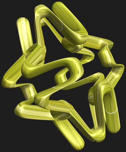 | Keywords: mathematica 3d cg parametricplot3d texture torus 輪環 りんかん ドーナツ どーなつ 四芒星 しぼうせい 四光星 しこうせい 四稜星 しりょうせい code program algorithm コード プログラム アルゴリズム bamboo 竹 たけ タケ geometric sculpture geometricsculpture shape geometry sculpture mapping テクスチャ マッピング 模様 もよう abstract 抽象 ちゅうしょう アブストラクト design pattern デザイン パターン graphic グラフィック グラフィクス structure 意匠 構造 symmetry 対称性 たいしょうせい シンメトリー 対称 たいしょう algorithm コード black background indoor hand a = 4; (* center hole size of a torus *) b = 4; (* tetra-torus *) c = -11; (* distance from the center of rotation *) d = 4; (* number of torus *) h = 3; (* height of a torus *) SetOptions[ParametricPlot3D, PlotRange -> Full, Mesh -> None, Boxed -> False, Axes -> False, PlotPoints -> 400, ImageSize -> 3000, Background -> RGBColor[{30, 30, 30}/255], PlotStyle -> Directive[Specularity[White, 50], Texture[Import["D:/tmp/71.jpg"]]], TextureCoordinateFunction -> ({#4 + #5, #5/Pi} &), Lighting -> "Neutral"]; f[v_] := Sin[2 Sin[Sin[Sin[v]]]]; x = (a - Cos[t] - f[b s]) Cos[s + Pi/(2 b)]; y = (a - Cos[t] - f[b s]) Sin[s + Pi/(2 b)]; z = (a - Sin[t] - h f[b s]) + c; rm = Table[{x, y, z}.RotationMatrix[2 i Pi/d, {1, 0, 0}], {i, d}]; ParametricPlot3D[rm, {t, 0, 2 Pi}, {s, 0, 2 Pi}] (*--- The Texture *) a = 4; (* center hole size of a torus *) b = 4; (* tetra-torus *) c = -11; (* distance from the center of rotation *) d = 4; (* number of torus *) h = 3; (* height of a torus *) SetOptions[ParametricPlot3D, PlotRange -> Full, Mesh -> None, Boxed -> False, Axes -> False, PlotPoints -> 400, ImageSize -> 3000, Background -> RGBColor[{30, 30, 30}/255], PlotStyle -> Directive[Specularity[White, 50], Texture[Import["D:/tmp/71.jpg"]]], TextureCoordinateFunction -> ({#4 + #5, #5/Pi} &), Lighting -> "Neutral"]; f[v_] := Sin[2 Sin[Sin[Sin[v]]]]; x = (a - Cos[t] - f[b s]) Cos[s + Pi/(2 b)]; y = (a - Cos[t] - f[b s]) Sin[s + Pi/(2 b)]; z = (a - Sin[t] - h f[b s]) + c; rm = Table[{x, y, z}.RotationMatrix[2 i Pi/d, {1, 0, 0}], {i, d}]; ParametricPlot3D[rm, {t, 0, 2 Pi}, {s, 0, 2 Pi}] (*--- The Texture *) |